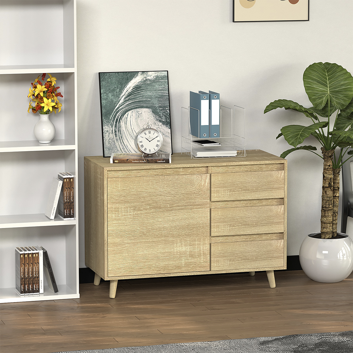 Nook & Trove Sideboard Buffet with Oak Finish, Storage Cabinet with 1 Door and 3 Drawers, 39.4″ W x 17.7″ D x 27.6″ H, New Hampshire